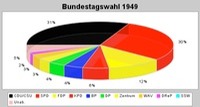 Wahlen zum ersten Deutschen Bundestag: Von den 402 Mandaten erringt die Union 139, die SPD 131, die FDP 52 und die KPD 15. Acht Abgeordnete aus West-Berlin haben im Bundestag kein Stimmrecht.